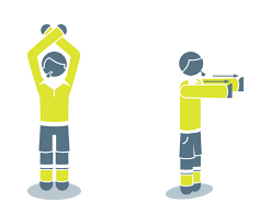 - Raising both arms above their head and crossing them at the wrists